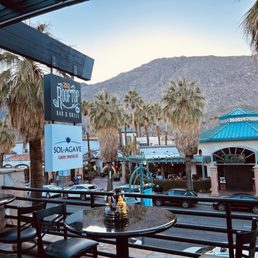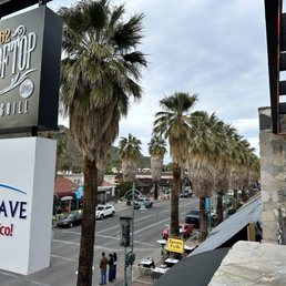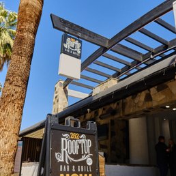 Here in Palm Springs were having a stormy kinda day. This is rare and we wanted to have cocktails and enjoy the weather. We chose ROOF TOP because of the view. When the rain started tp come they brought us umbrellas tp keep us dry. They even kept the food and drinks coming. We were the only silly people on the patio but we sure did have fun. THANKS to the establishment and her team for helping us have a nice Sunday.